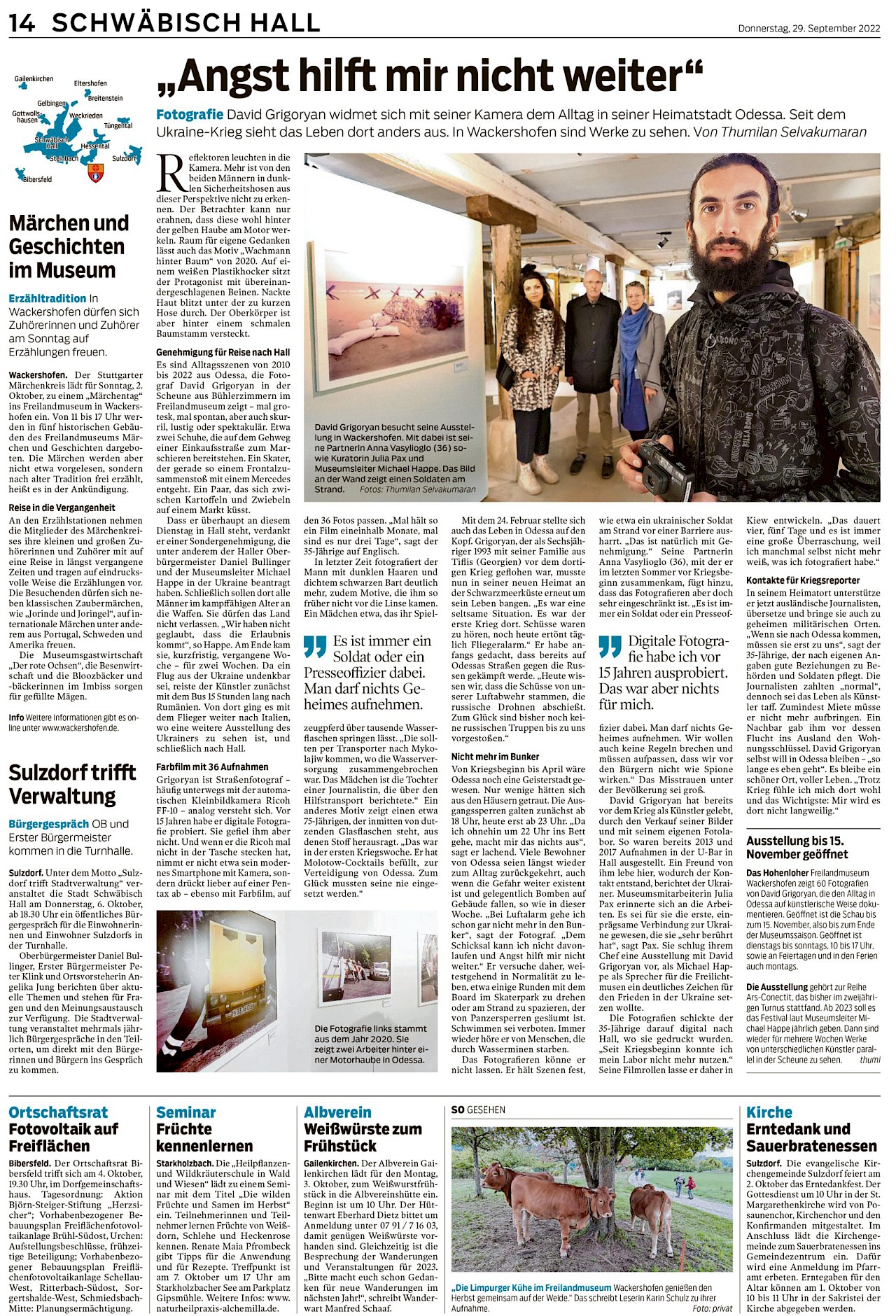 Der Artikel „Angst hilft mir nicht weiter“ von Thumilan Selvakumaran erschien anlässlich des Besuchs am 29. September 2022 im Haller Tagblatt – Zum Vergrößern bitte auf das Bild klicken!