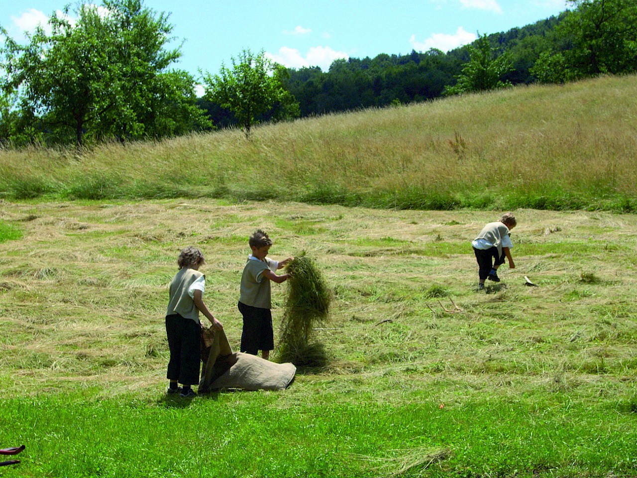 In früheren Zeiten stellten viele Bauern aus der Milch, der eigenen Tiere, selbst Produkte wie Butter her. Die Kinder lernen, wie man auf verschiedenen Wegen selbst Butter herstellen kann. Am Ende kann die Butter mit nach Hause genommen werden.